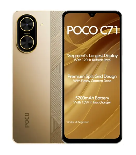 The Poco C71 comes with 128GB of internal storage and options for either 6GB or 8GB of RAM. It also includes a dedicated microSDXC card slot for expandable storage.