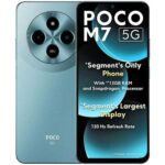 The Xiaomi Poco M7 runs on Android 14 OS and supports up to two major Android upgrades, featuring HyperOS as its user interface. The device has a sturdy build with dimensions of 171.9 x 77.8 x 8.2 mm and a weight of 204 grams. It accommodates dual Nano-SIM cards and is available in three elegant colors: Ocean Blue, Satin Black, and Mint Green.
